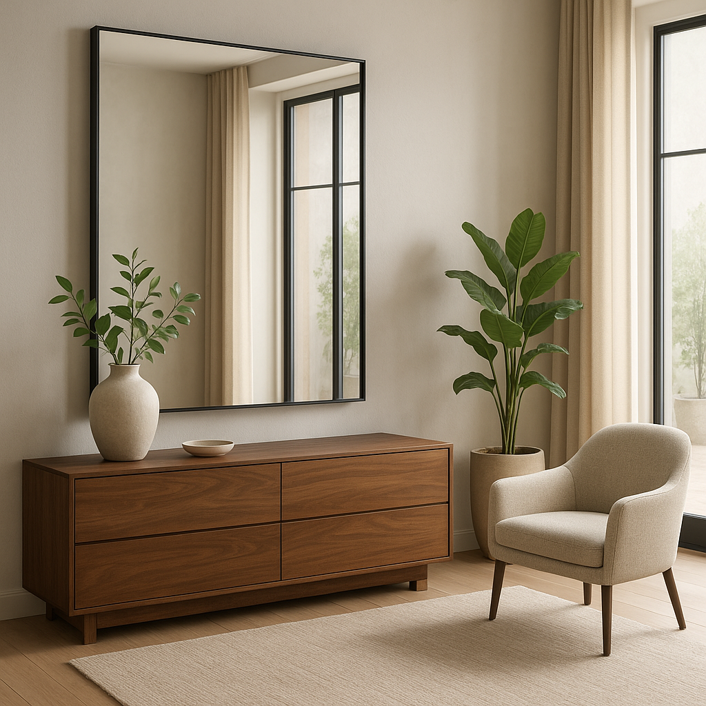 Große Spiegel verwandeln jeden Raum in ein offenes, helles und einladendes Ambiete. Mit ihrer Fähigkeit, Licht zu reflektieren und optische Illusionen zu erzeugen, tragen sie entscheidend zur Schaffung von Raumtiefe…