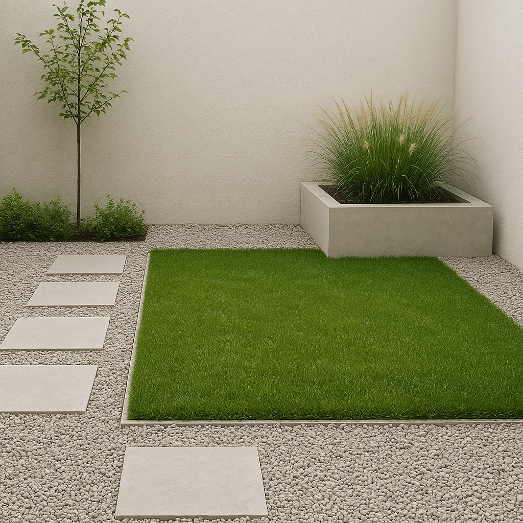 Betonplatten, helle Kiesflächen und grob geschliffener Naturstein schaffen eine zurückhaltende Basis. Holz in hellen Nuancen oder Cortenstahl kann Akzente setzen. Wichtig ist das Zusammenspiel von Struktur und Farbe: Glatte Flächen kombiniert mit rauen Texturen führen zu einem spannenden Kontrast.