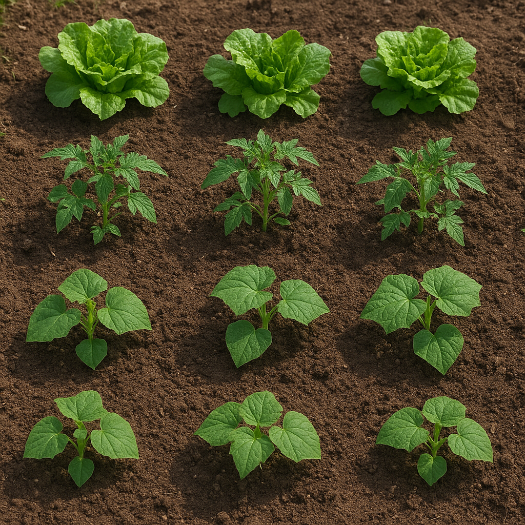 - Salate (Kopfsalat): 20–25 cm Reihen- und Pflanzabstand