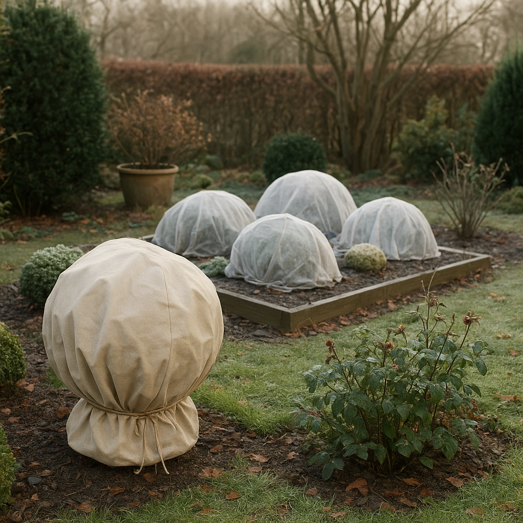 - Schutzvlies und Jutesäcke zum Abdecken empfindlicher Pflanzen.